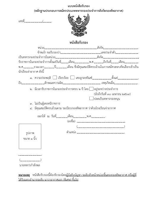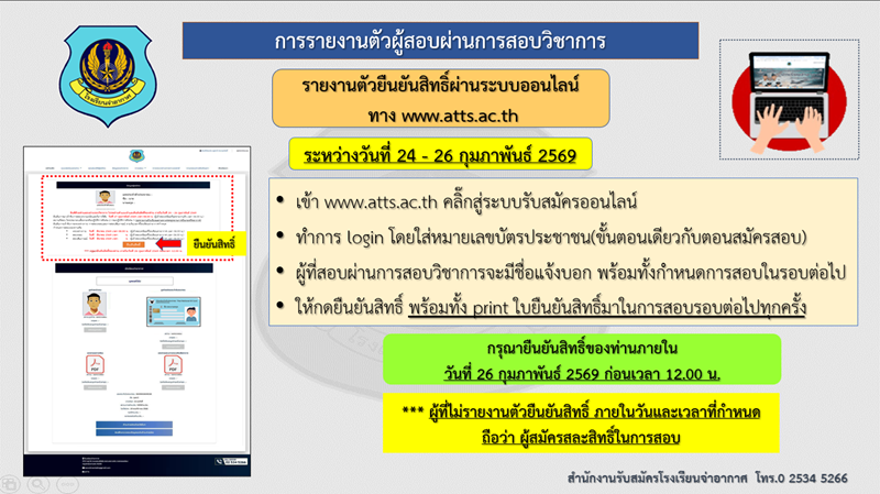 คำเตือน การสอบคัดเลือกเข้าเป็นนักเรียนจ่าอากาศ
