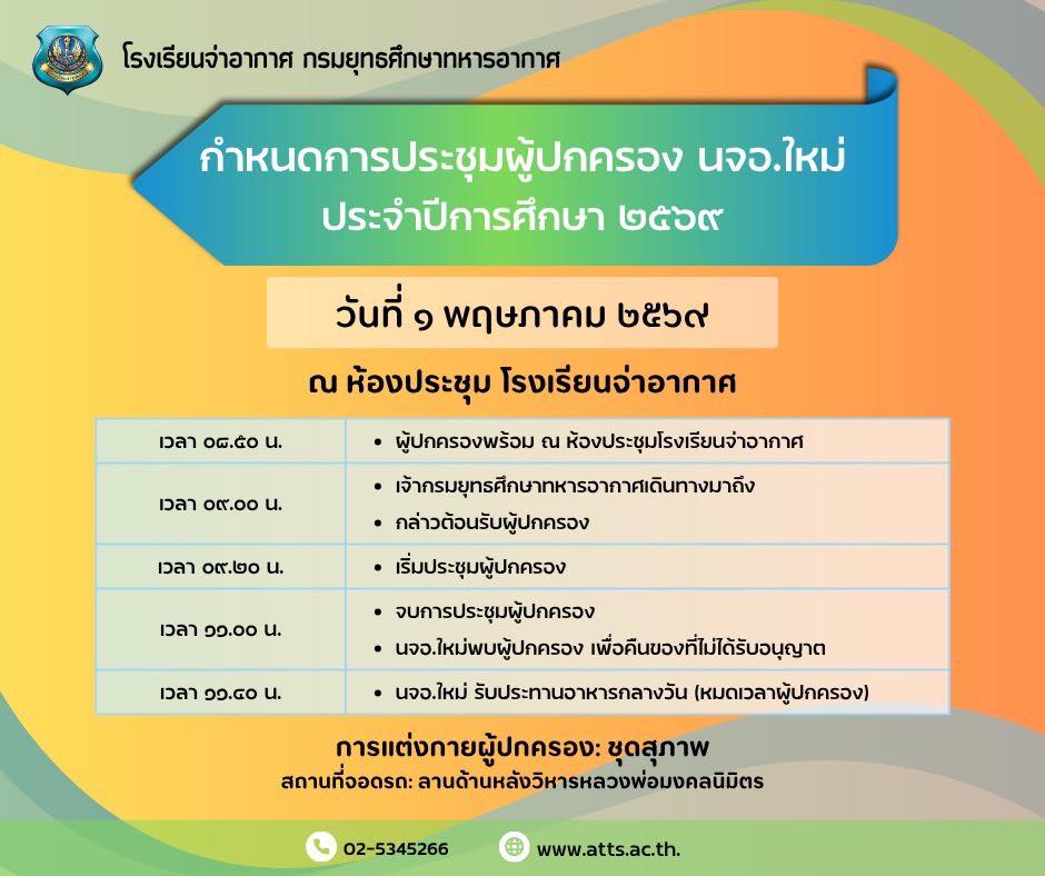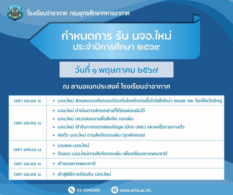 ในวันจันทร์ที่ 27 เม.ย.69 เวลา 08.30 น. ณ โรงเรียนจ่าอากาศ ตามรายชื่อต่อไปนี้