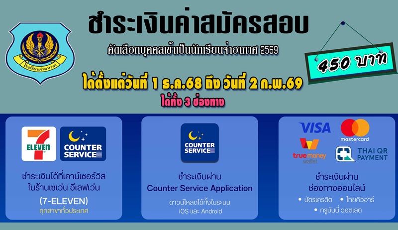 คำเตือน การสอบคัดเลือกเข้าเป็นนักเรียนจ่าอากาศ