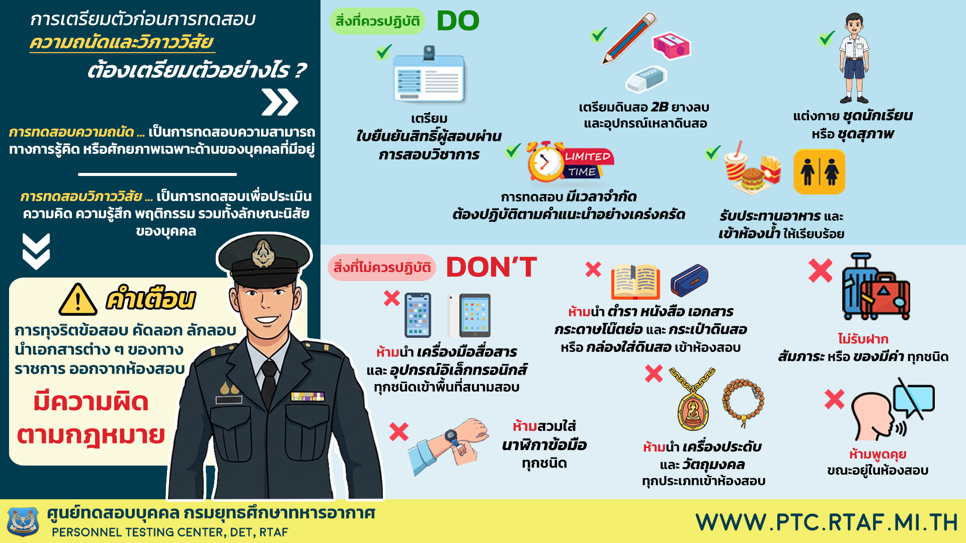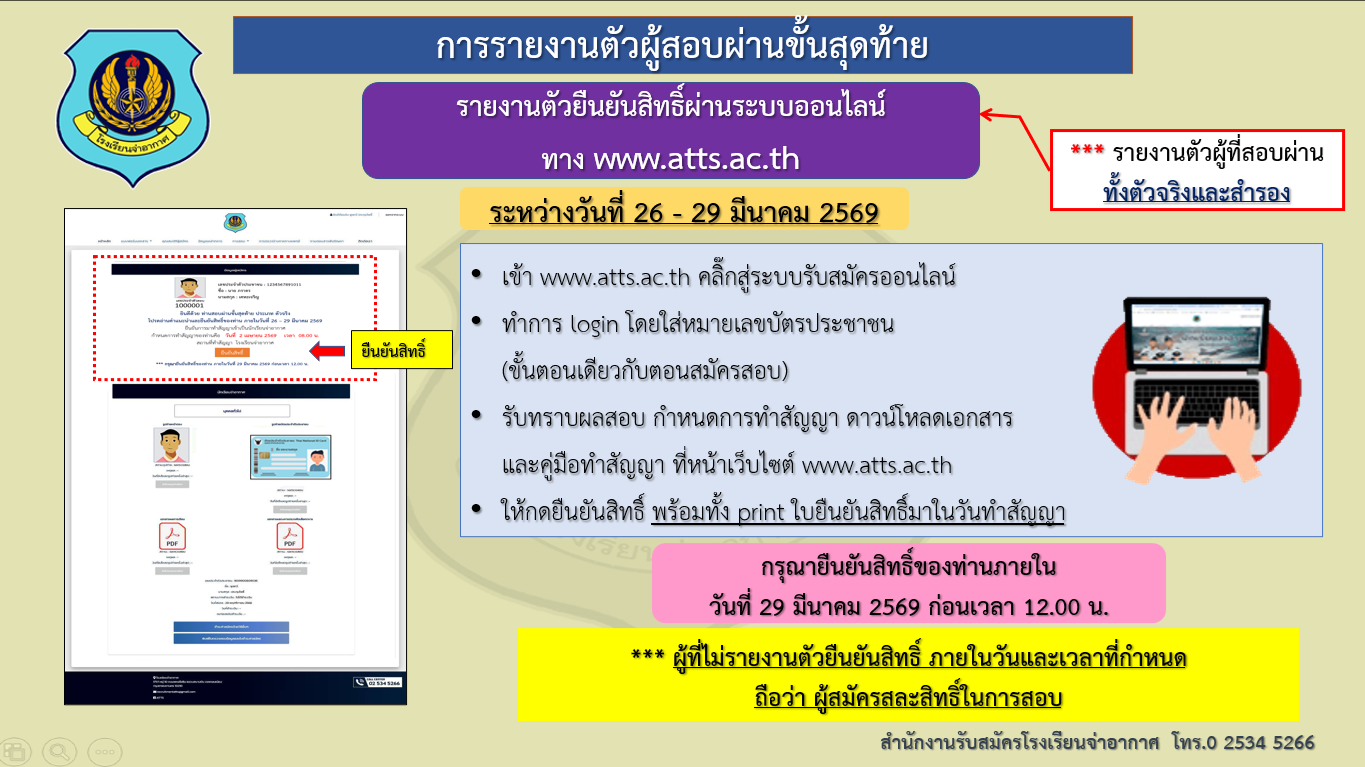 คำเตือน การสอบคัดเลือกเข้าเป็นนักเรียนจ่าอากาศ