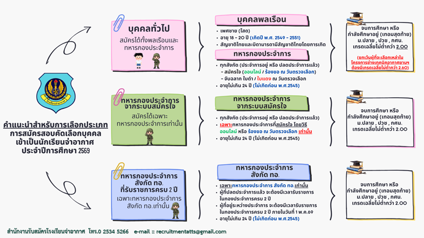 คำเตือน การสอบคัดเลือกเข้าเป็นนักเรียนจ่าอากาศ